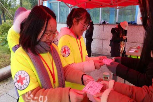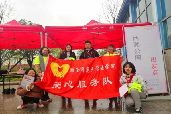 活动期间,签到组协助开幕式开展、引导参赛者进行扫码签到,发放物资包以及号码布,并且告知参赛者领完物资方可去开幕式,引导出发的参赛者找到交通工具,为他们指引路线,尽快疏散人群,减小签到点服务压力,为签到点摄影,为参赛者提供咨询服务,大大便利了益跑者。医疗组利用医学专业知识去到富兴广场、橘子洲、市妇联进行医疗志愿服务,为受伤的益跑者进行了简单的处理,让益跑者们在寒冷中倍感暖意。尽管天气不作美,但是签到组和医疗组的志愿者们仍是顶着寒风飘雨为益跑者提供了贴心的服务。