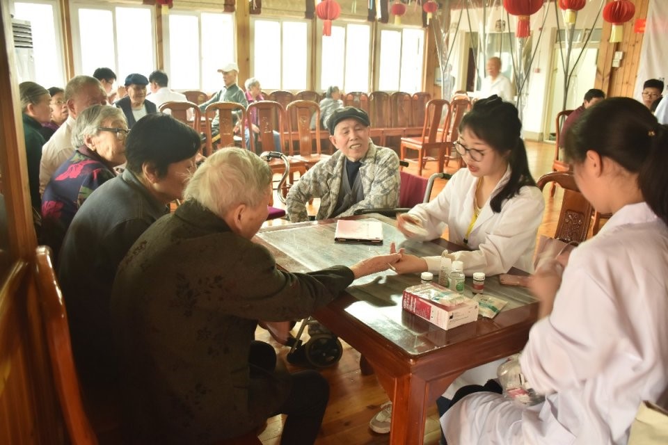 志愿者在指定地点迎接老人,志愿者耐心地为其测血糖血压,针对居民血糖血压值高低,为他们提供一些饮食方面的相关建议,而其它志愿者则在一旁对老人进行健康知识的普及,展示实用的中医小知识与技巧。期间,志愿者与老人们的互动性高,活动进行地十分顺利。