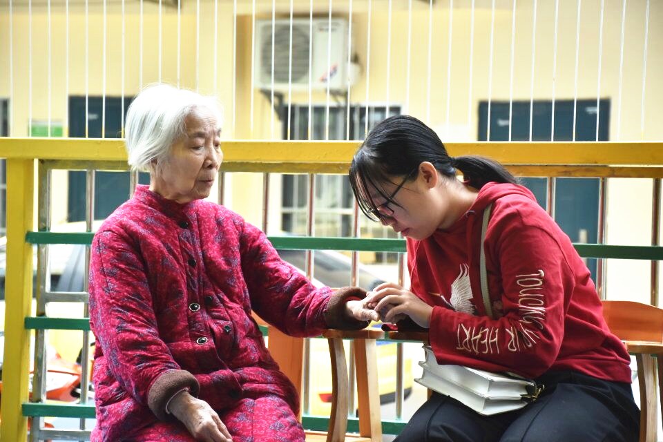 节目表演结束后,志愿者们分组协助护工将老人们送回房间,并与主动与老人交谈起来,聆听他们的故事,分享自己的趣事。一些精神状态较好的老人们聚在一起,和志愿者们合唱经典老歌:《学习雷锋》脍炙人口、《南屏晚钟》优雅动人。一时间养老中心充满欢声笑语。