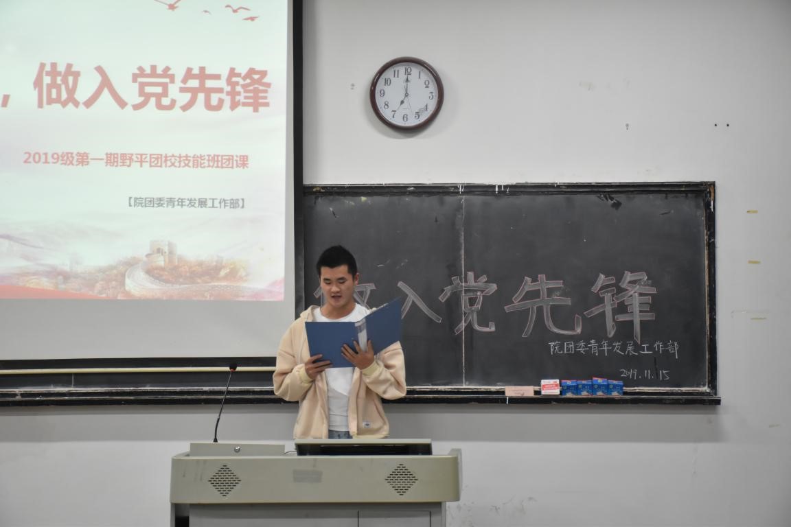 2019年11月15日19点,永利集团官网团委青年发展工作部于勤医楼7教室开展野平团校2019级第一期技能班“知入党流程,做入党先锋”团课,此次团课由伍湘豫主持,党办学生助理兰鸿翔和黄纪飚主讲,永利集团官网各系统的部分同学参与。