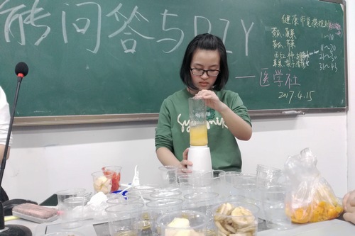 4月15日14:30,永利集团官网医学社于勤医楼三教室开展“健康的饮料——蔬菜汁功能问答与DIY”活动。