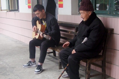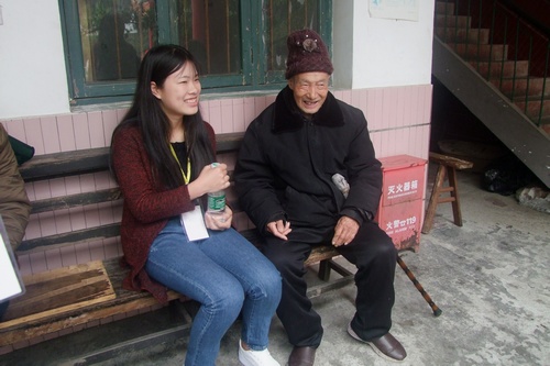 活动开始之前,项目组成员对志愿者进行了明确的分工和筛选志愿者的娱乐节目。到达敬老院之后,敬老院的工作人员首先详细地向志愿者们介绍了老人的相关情况。接着志愿者们分别去不同的房间和老人们交流聊天。在工作人员的指引下,志愿者们搀扶着老人或推着行动不便的老人的轮椅来到敬老院的庭院观看表演。志愿者们演唱了《打靶归来》等红军歌曲,用吉他弹奏《成都》,用口琴吹奏《茉莉花》,这些表演赢得了大家热烈的掌声。随后,三名志愿者唱跳《小苹果》,带动老人身体跟着摇晃起来。最后,志愿者们还对敬老院的的庭院进行了打扫,为老人营造一个舒适的环境。