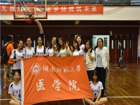 双方队员握手以表友谊,随后比赛正式开始,各队拉开队距,迅速进入比赛状态。比赛初期,医学院女排占据优势,发球与击球没有任何失误,获得了在场观众的热烈掌声。虽信息科学与工程学院一击扣球得分,但医学院女排临危不乱,转换策略继续比赛。主攻手不断使用跳发球和高吊发球的技巧,在第一局的最后成功扣杀取得胜利。在第二局局比赛中,医学院女排进入最佳状态,队员们相互配合,以2:0的成绩取得了最终胜利。获得了女子排球赛第七名的好成绩。 在体育学院和商学院的友谊赛后,此次排球赛圆满落幕。进行闭幕式后,医学院排球队合影留念。