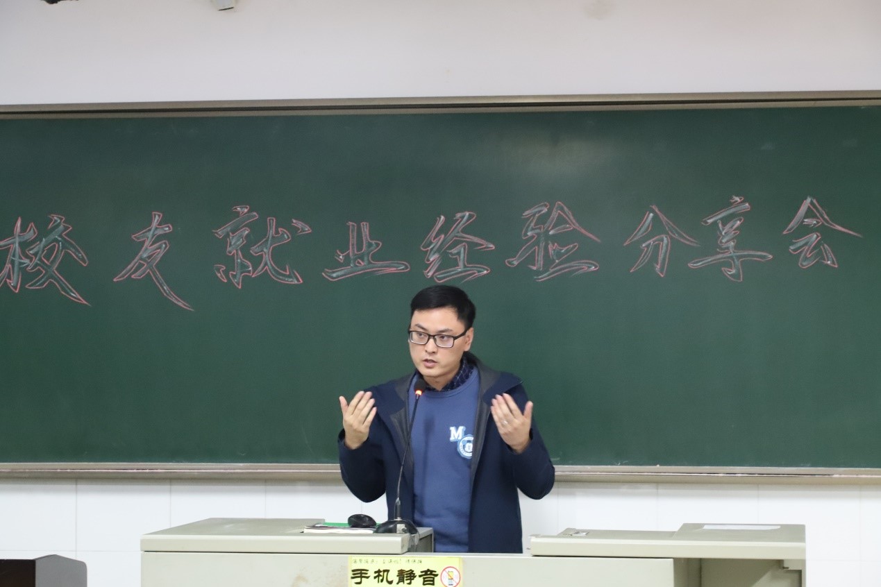 张东鑫学长以三个小故事的形式,鼓励大家放开眼界、扩展见识,在更广的就业机会中做出更好的选择。